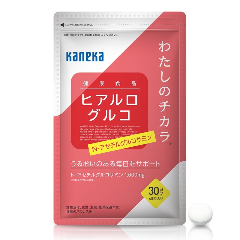 - 加齢とともに減少する“ヒアルロン酸 ”。 体内で”ヒアルロン酸”の「もと」となるN-アセチルグルコサミンが、うるおいのある毎日をサポートします。 「わたしのチカラ ヒアルログルコ」なら、1日たった2粒で手軽においしく食べていただけます。