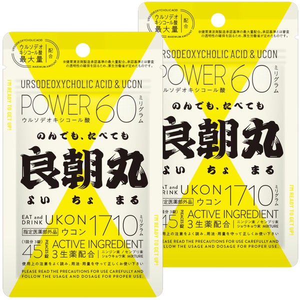 良朝丸 二日酔い [指定医薬部外品]ウコン リュウジ監修 肝臓[ウルソ デオキシコール酸 最大量 60㎎ 配合 ]生薬 ニンジン ショウキョウ センブリ 45錠2袋