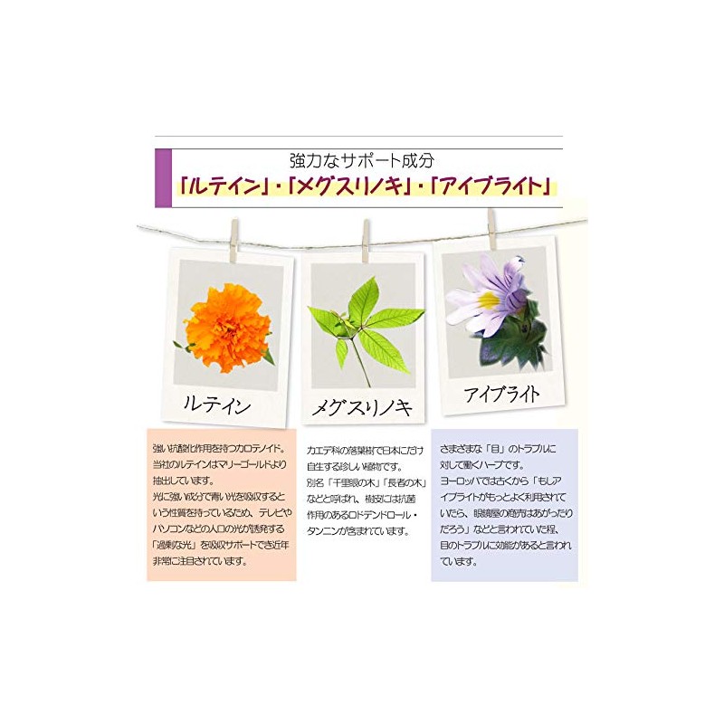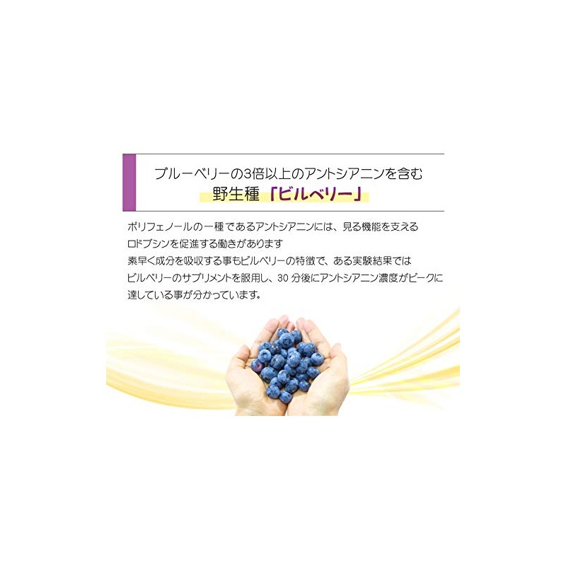- 1日量 2粒あたり、ビルベリー 500mg ルテイン 9mg配合