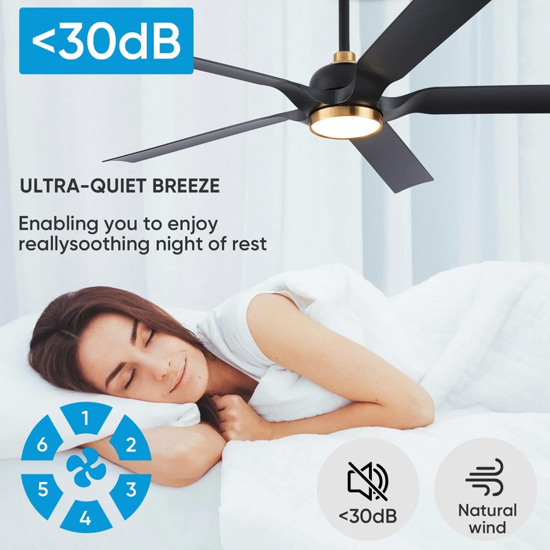 - ✨【Ceiling Fan with Adjustable LED Light】The 60" large black ceiling fan has 3 colors for you to control: cool white (5000K), natural white (4000K), and warm white (3000K). Meet different lighting needs in your life, truly free and bright, and bring you a different lighting experience.