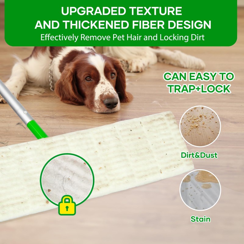 - 【 The nemesis of pet hair 】Specially prepared for families with pets, the surface fibers have super strong adsorption, which can easily take away pet hair and human hair.Oversized design, 1.5X wider than a regular swiffer sweeper,make floor cleaning easier.