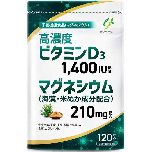 健やかの杜 60日分 ビタミンD ビタミンD3 1400IU マグネシウム 210mg(海藻・米ぬか成分含有)[120粒・管理栄養士監修] サプリ