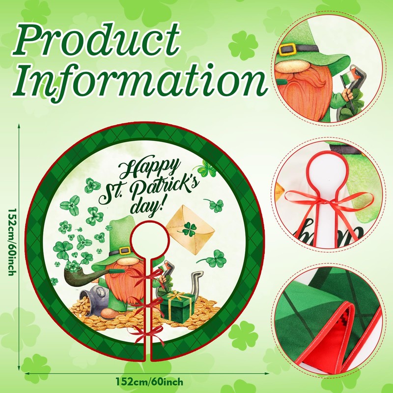 • Large Size: The 60 inch double-sided St. Patrick's Day and Valentine's Day tree skirt is suitable for most sizes of Christmas trees. It can cover a large part of the bottom of the tree, so you can put enough gifts on it