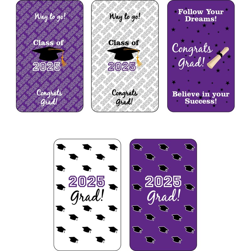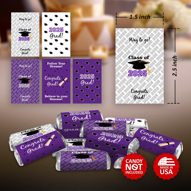 60 New Graduation Cap Party Class of 2025 Miniatures Candy Bar Wrapper, Mini Candy Chocolate Bar Stickers, Labels, Candy Not Included, Color Purple. Made in USA