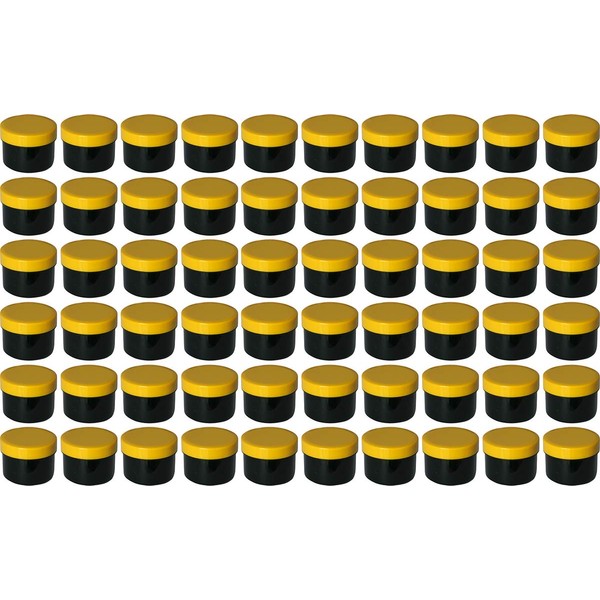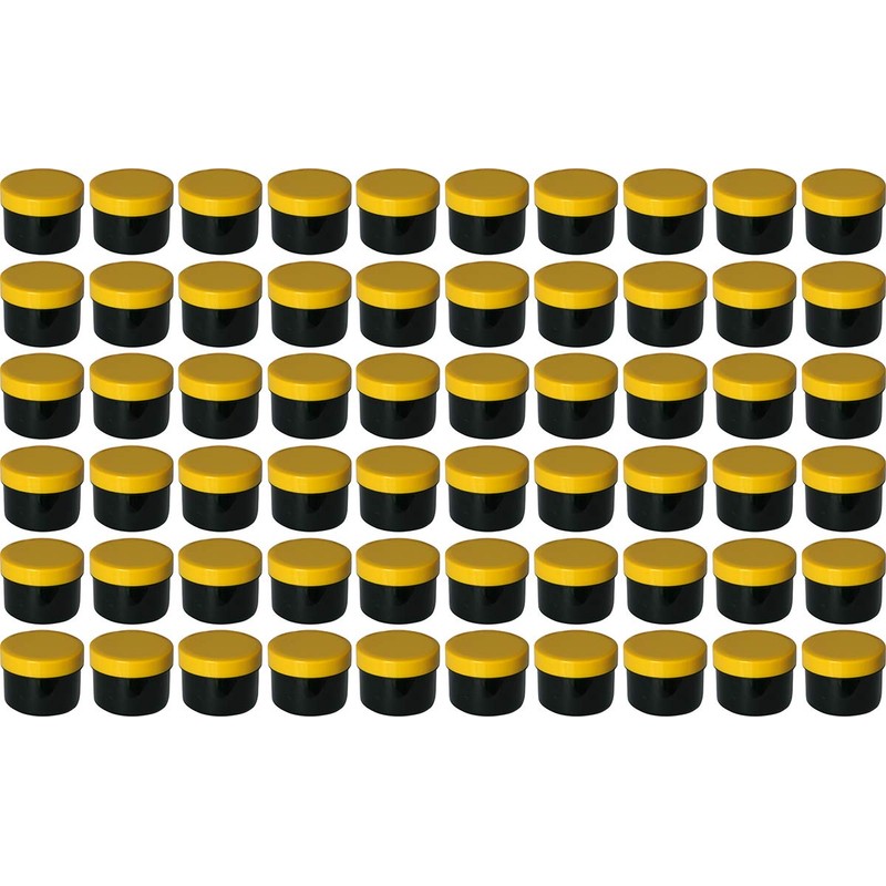 60 Ointment Containers, Cream Jars, Flat Black, 35 ml Capacity with Yellow Lids, Made in Germany