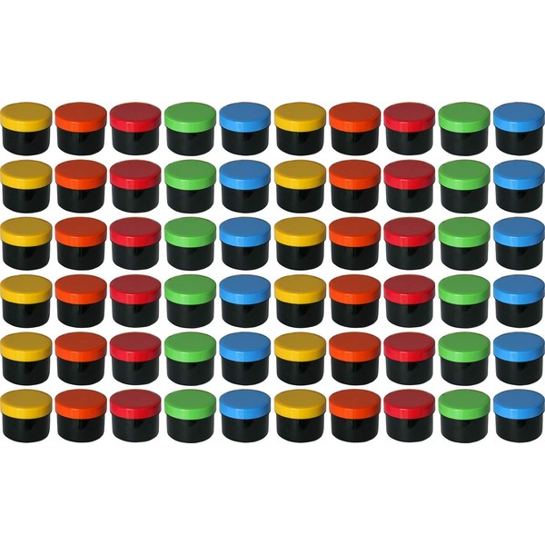 60 Ointment Containers, Cream Jars, Flat Black, 35 ml Content with Coloured L...