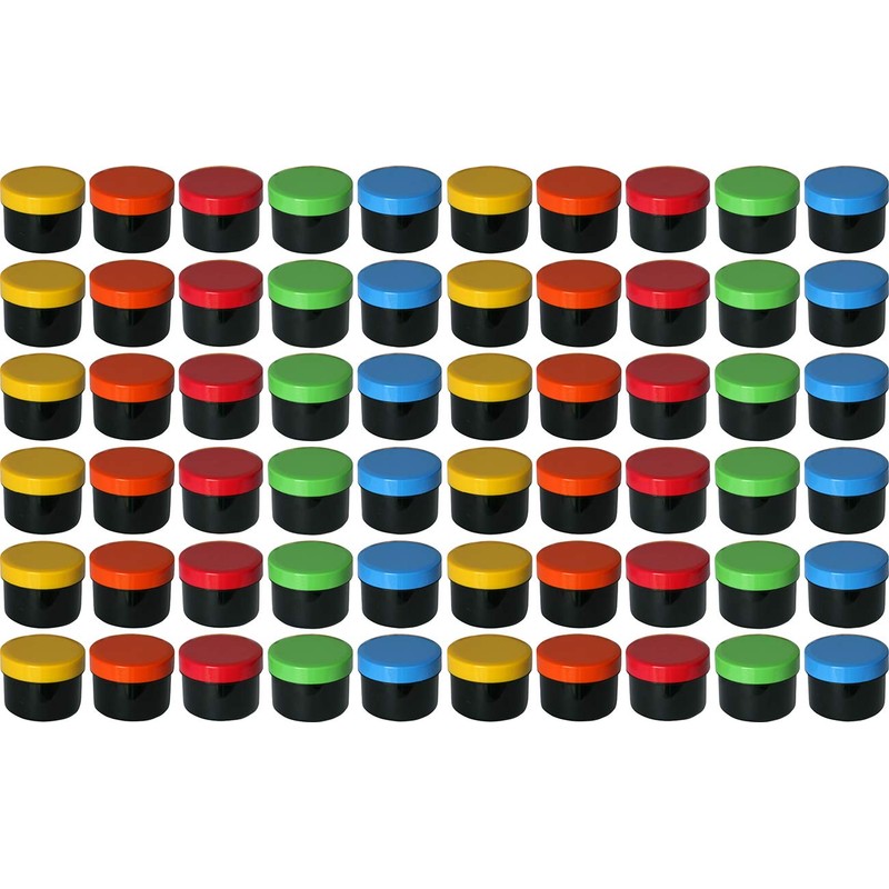 60 Ointment Containers, Cream Jars, Flat Black, 35 ml Content with Coloured Lids, Made in Germany