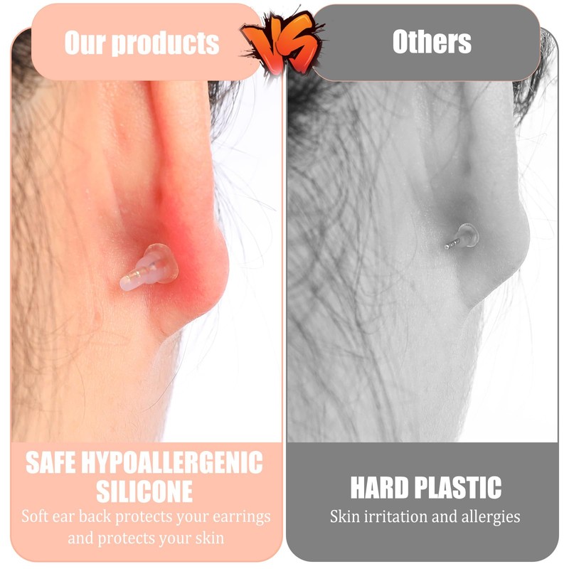 - Smooth and Soft: Our clear rubber earring backs are crafted from silicone rubber that is not only crystal clear, but also latex-free, dust-proof, and hypoallergenic. Experience the flexibility and comfort when wearing our earring backs replacements.