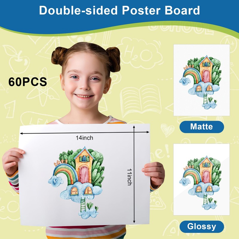 - Value Pack: 60 sheets 11 x 14 inches white poster board paper bulk. Perfect for group activities or long-term use. Ideal for school projects, arts, and crafts, vision board, displays and signs, sales, promotions, scrapbooking, sports events, office use and classroom activities