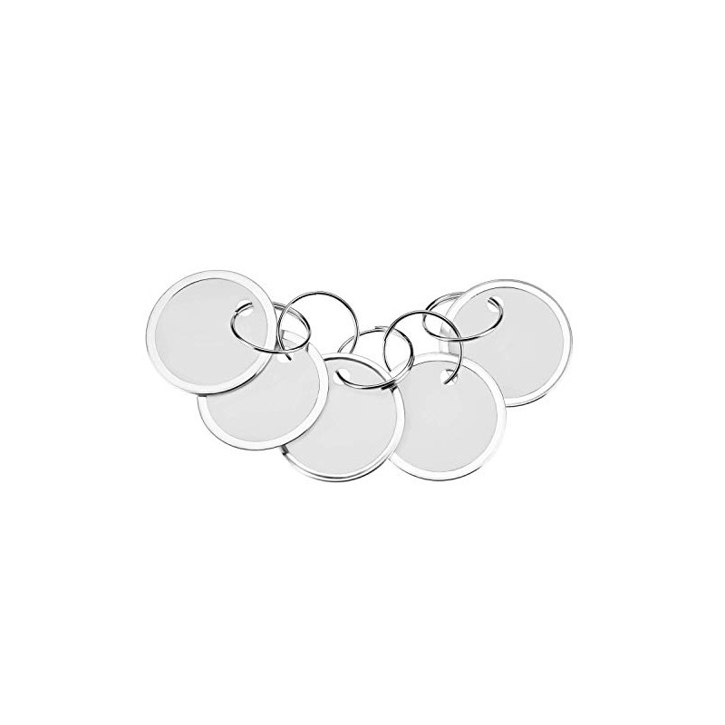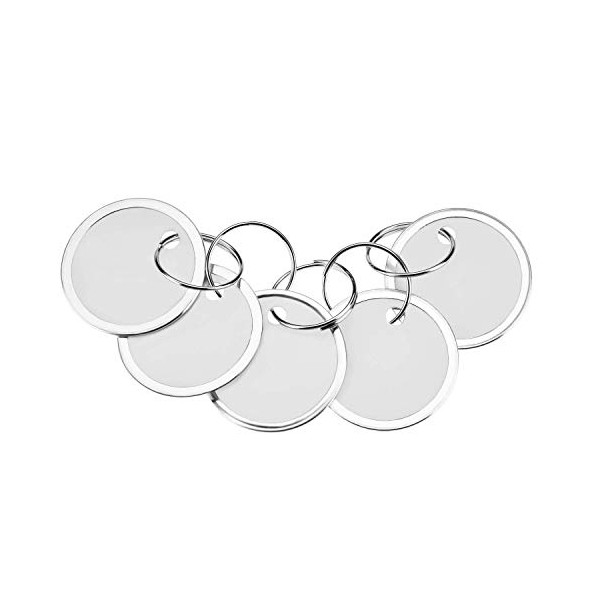 - Size: key tag is approx. 31mm/ 1.22 inches in diameter, the key ring is approx. 18mm/ 0.7 inch; Each key tags have smooth surface, and each tag comes with double side white paper, which can be written.