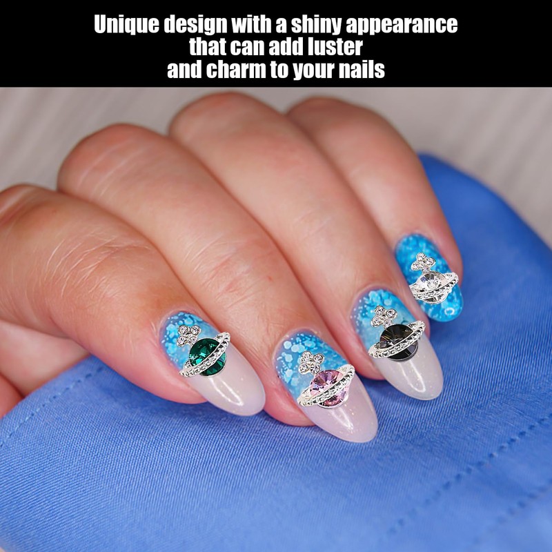 - Retro design: the accessories include retro elements such as planets and crosses with unique shapes that give your manicure a combination of nostalgia and fashion and can make your nail art more diverse and personal.