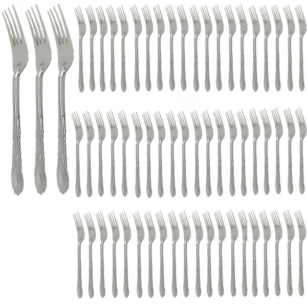 Indulge in the perfect dining experience with this 60-piece set of Stainless Steel Dinner Forks. Crafted with precision from high-quality stainless steel, each fork measures 7.25 inches, offering the ideal balance of elegance and functionality. The set is a versatile addition to any kitchen, perfect for everyday use or special occasions. With its durable construction, these forks are dishwasher-safe, making cleaning a breeze. Elevate your dining table with these sleek and modern dinner forks, ensuring an enjoyable and lasting investment for your kitchen.
