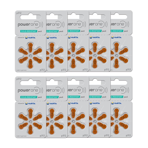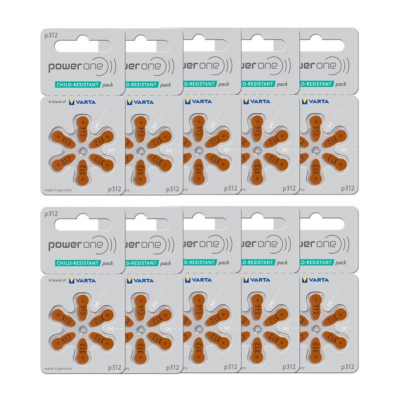 - High Quality Zinc Air Battery size 312, brown tab, 60 total batteries