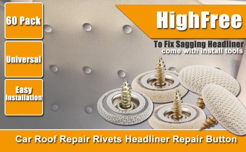 - Universal Car Roof Repair Rivets: 60pcs car proof repair rivets headliner repair button for Interior ceiling cloth fixing screw cap roof repair buckle for all cars.