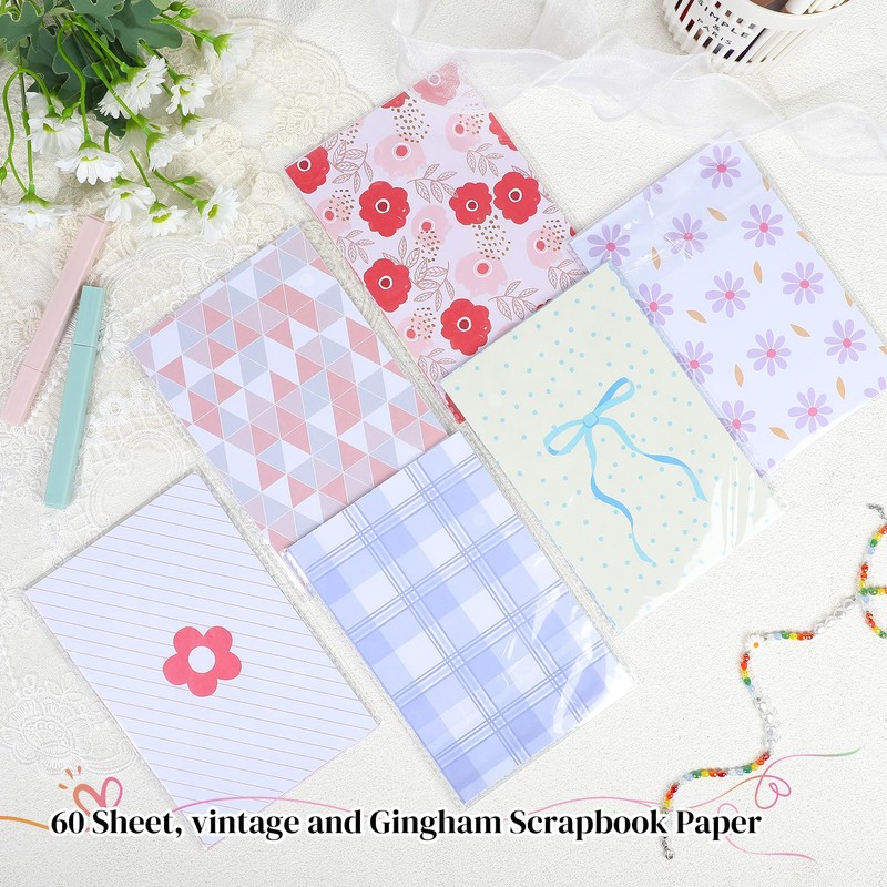 - Colorful Floral & Plaid Scrapbook Paper: Scrapbook paper is printed with vivid floral and plaid elements in various styles and rich colors, adding a vivid, natural beauty to your junk journal supplies.