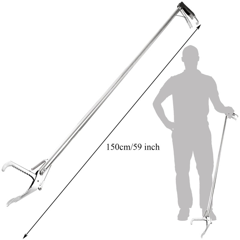 Mezchi snake catcher measures 60'' long, a perfect length to keep a safe distance between you and snakes. Mezchi snake tong features thickened steel rope configuration and thickened and lengthened spring, it's more durable, better elasticity and not easy to break. Serrated jaw makes snakes and other reptiles not easy to break free. With auto-lock, you can adjust any angle as you like. Made of premium stainless steel, Mezchi snake catcher tool is durable and sturdy.
