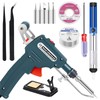 - [Complete Accessories] The soldering gun kit includes 1 soldering guns, 1 desoldering pump, 1 holder, 2 tweezers, 1 soldering wire, 1 sheet metal strip, 5 soldering heads and 1 Phillips screwdriver. A complete range of accessories to meet all your needs.