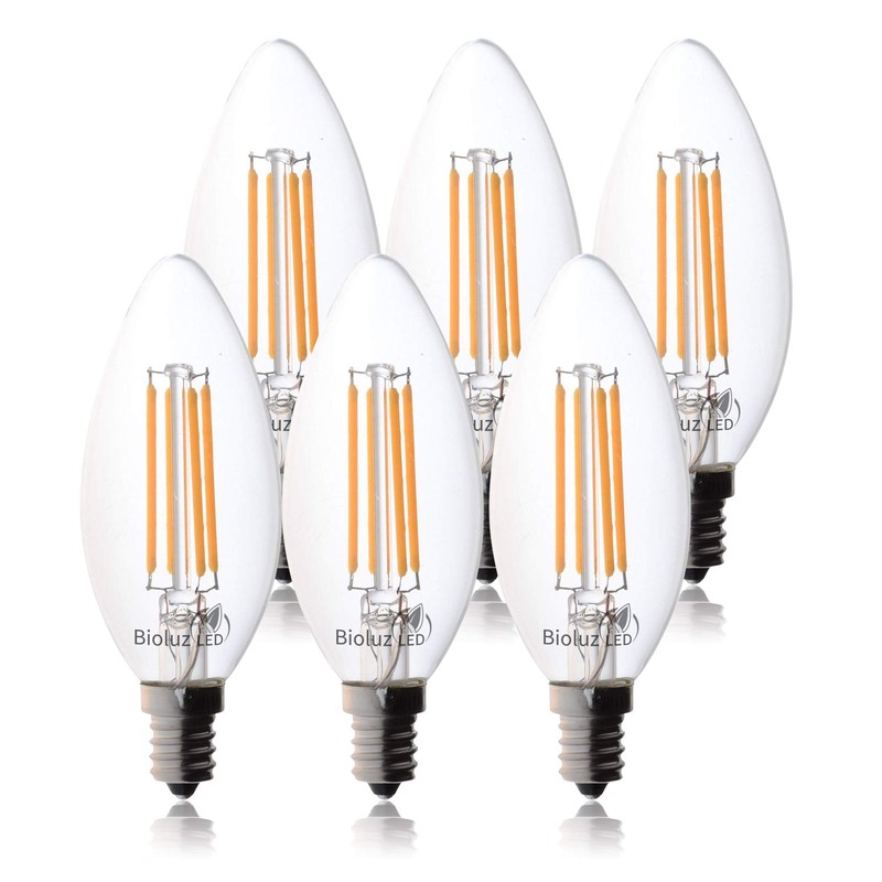 60 Watt Candelabra Bulbs Bioluz LED Dimmable Clear Filament LED Bulbs Using only 5.5 watts E12 Base Type B Type C Candle Bulbs Pack of 6
