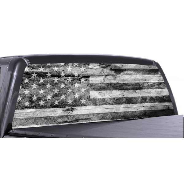 60" x 20" Black and White American Flag Distressed Truck Rear Window Tint Perforated Vinyl Graphic