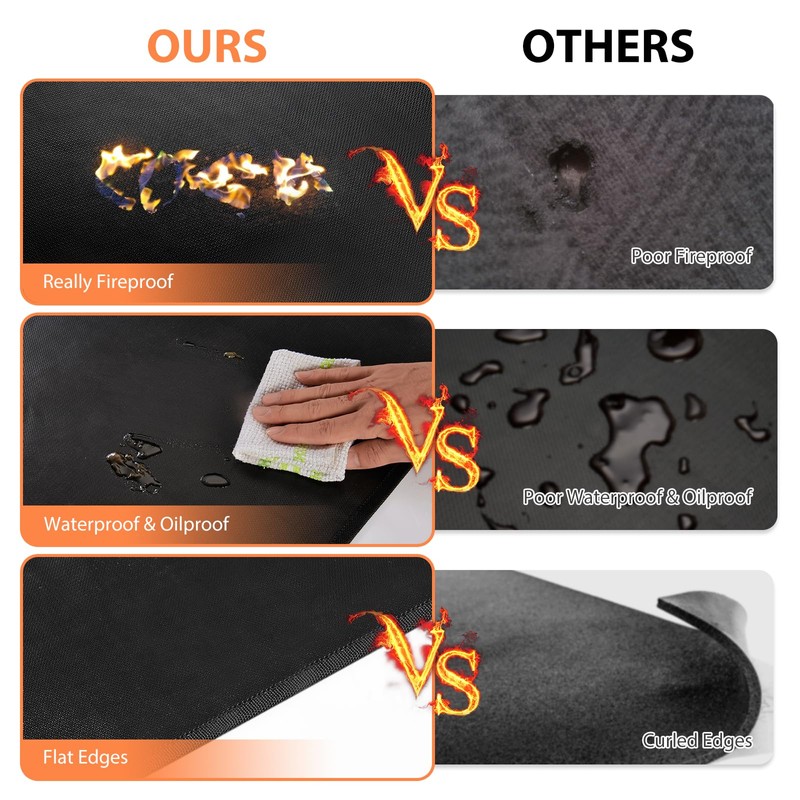 - Widely Used:Our grilling mat for outdoor grill placed in your garden, deck, patio, grass and other outdoor barbecue spots, It is suitable for multiple types of grills, such as charcoal grills, gas grills, oil fryers and smokers. It can also be used under the fire pit. It can also be used indoors, in front of your fireplace, as a fireplace mat