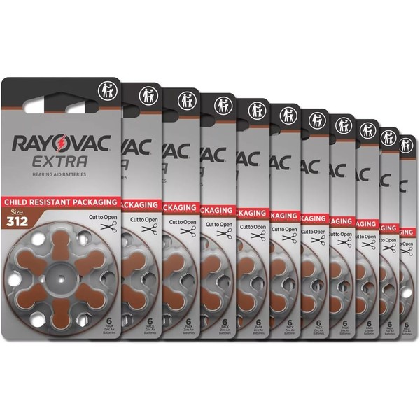 - 60 x Size 312 Rayovac Extra Advanced Hearing Aid Batteries