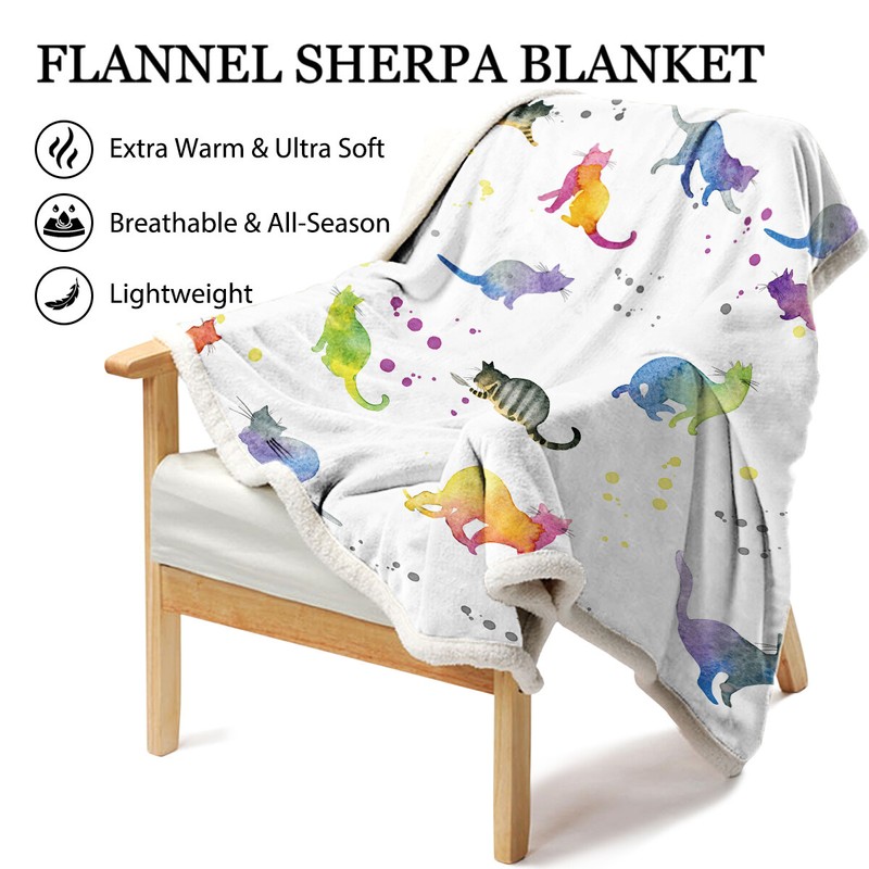 60"x80"Soft Sherpa Fleece Throw Blanket Watercolor Cat Warm Blanket For Bed Sofa