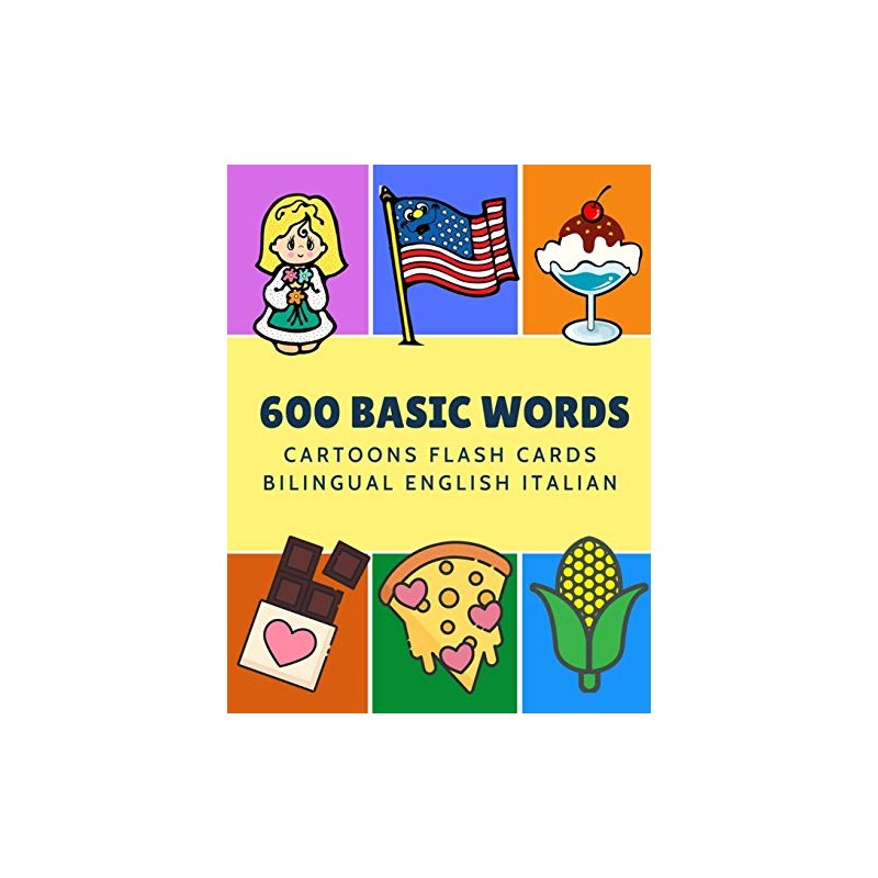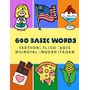 600 Basic Words Cartoons Flash Cards Bilingual English Italian: Easy learning baby first book with card games like ABC alphabet Numbers Animals to ... for toddlers kids to beginners adults.