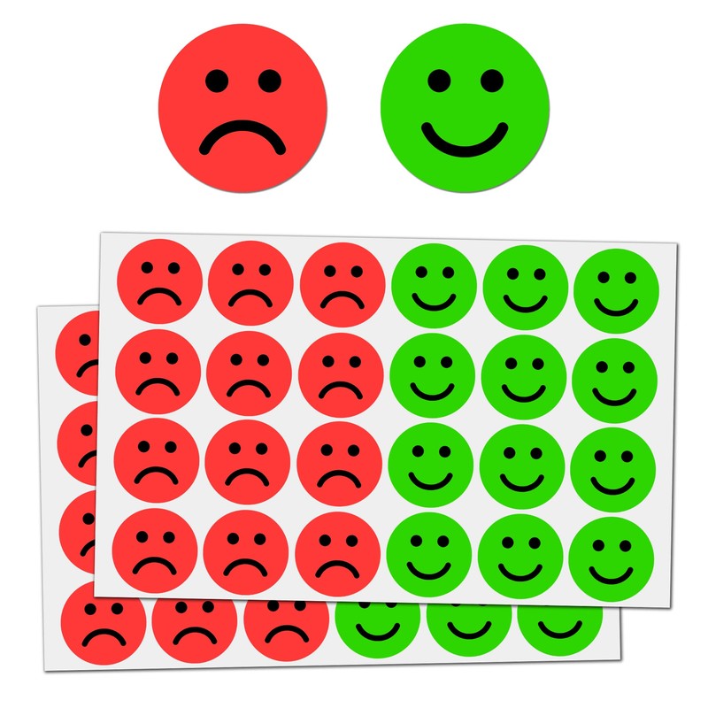 600 Pack - Happy/Sad Smile Face Behavior Emotion Stickers - Red/Green, 1"