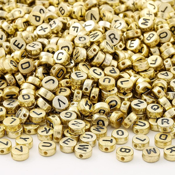 600 Pieces Acrylic Round Letter Beads Set Initial Alphabet Beads Letter Beads for Threading for DIY Friendship Bracelet Jewellery Making (Gold)