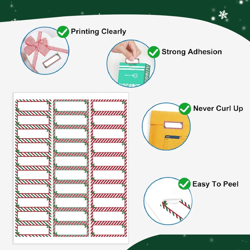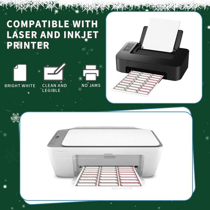 - Printer Compatibility: these Christmas address return labels are compatible with Laser and Inkjet printer, ensuring smooth printing without jams. Matte surface prevents ink smudges for hassle-free printing. Peel labels easily from the backing by bending the paper slightly