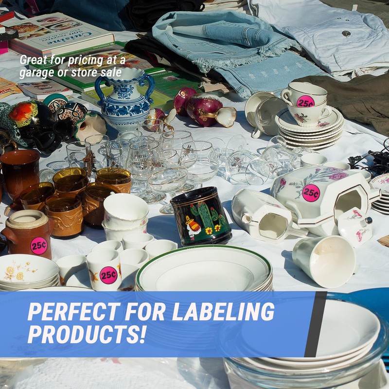 600 Preprinted 25 Cent Price Labels - 2 inch, Round, Pink - Retail Store Pricing Stickers for Yard and Garage Sales, Estate Sales - 2 Rolls of 300 Stickers