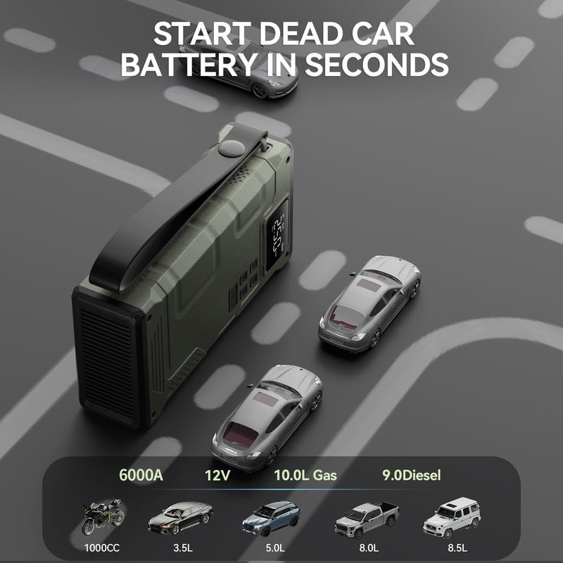 6000A【5 and 1】Geeneu Portable Jump Starter with Air Compressor, Car Battery Jump Box with 150PSI Digital Tire Inflator for 10L Gas/9L Diesel, 12V Battery Jumper Starter Power Pack Booster with Air Pump jumper box car battery car battery battery jumper