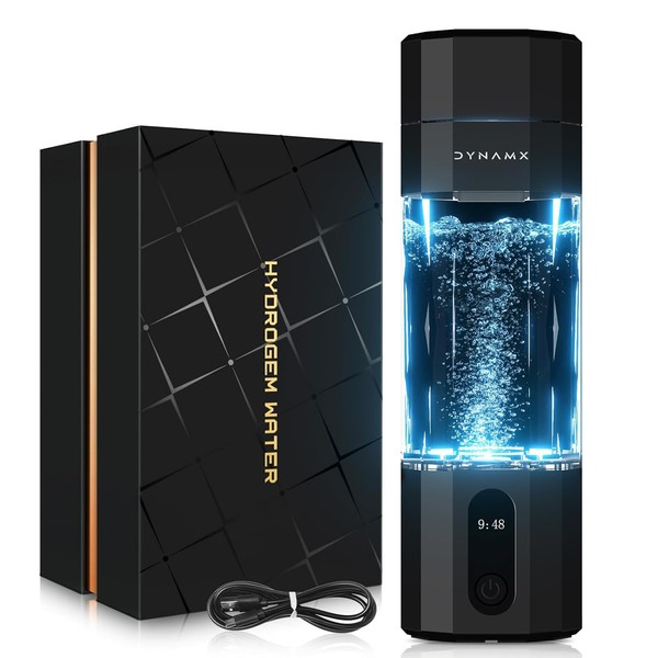 【6000PPB】 DYNAMX Hydrogen Water Bottle, Portable Hydrogen Generator, SPE/PEM Technology Hydrogenated Water Generator, Cutting-Edge Bottle,Black