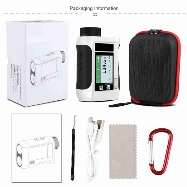 1、Multiple functions with Straight line distance, Vertical distance, Horizontal distance, Speed, Two-point height, Closest/Farthest distance, Area, Volume, Golf distance compensation, 20 sets of data storage, and more. 2、Measuring range from 5m to 600m/800m/1200m/1500m, with +/- 0.5m accuracy. 3、LCD color display with touch screen for easy data reading and mode setting.