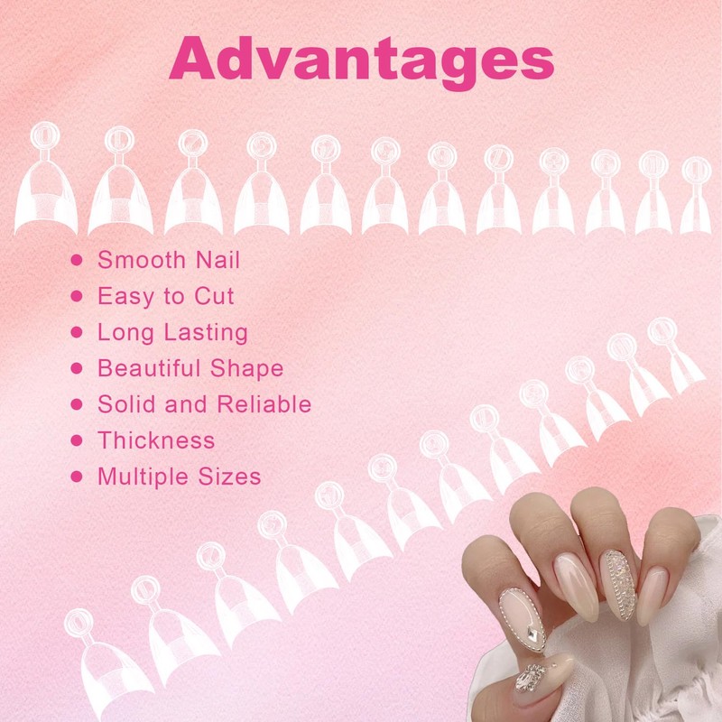 - 【Comfortable Fit for Nails】The design of the nail tips for gel extensions fits the curvature of the nail very well, providing a comfortable wearing experience. Its edges are smooth and delicate, and will not scratch the skin or snag on clothing.
