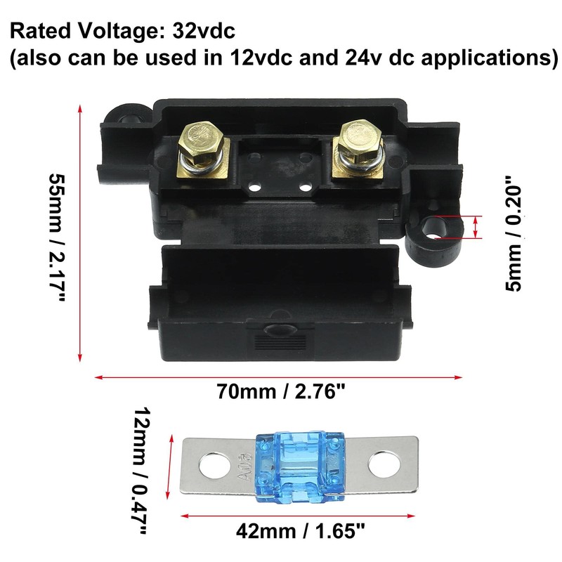 Fuse Holder Size: 70x55x17mm / 2.76"x2.17"x0.67"(L*W*H)