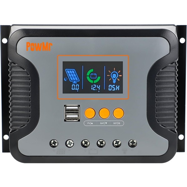 - 【 3-STAGE PWM Technology】The solar controller is equipped with advanced smart PWM technology with high charging efficiency, through three stages of charge modes(Bulk, boost, float), fast, efficient, and safe battery charge, effectively extending the battery life; a combination of solar light control and time control, freely adjust the load enable duration.