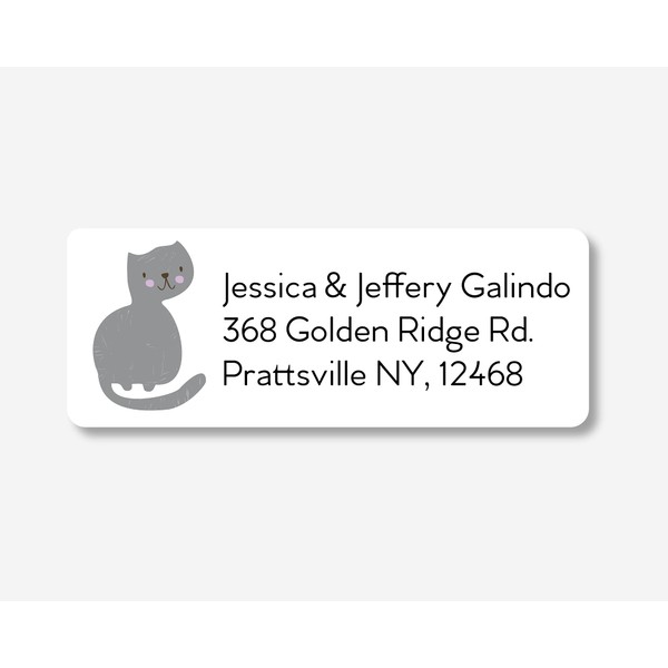 60ct - Cat Return Address Labels/Stickers (#565-WH)