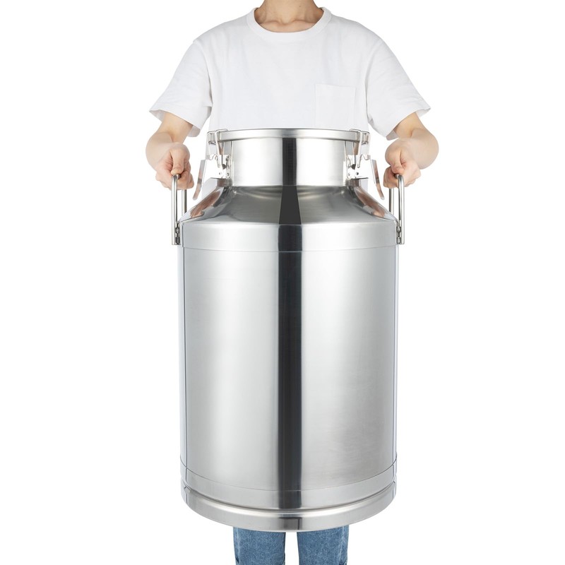 - Strong and Wear-Resistant: Milk can features embedded silicone more airtight. It is a one piece can with added support bottom and top, not pieces welding together. The smooth mirror-polish finish of the milk can is dent resistant and ready for heavy restaurant use. 360 ° turnover without spillage.