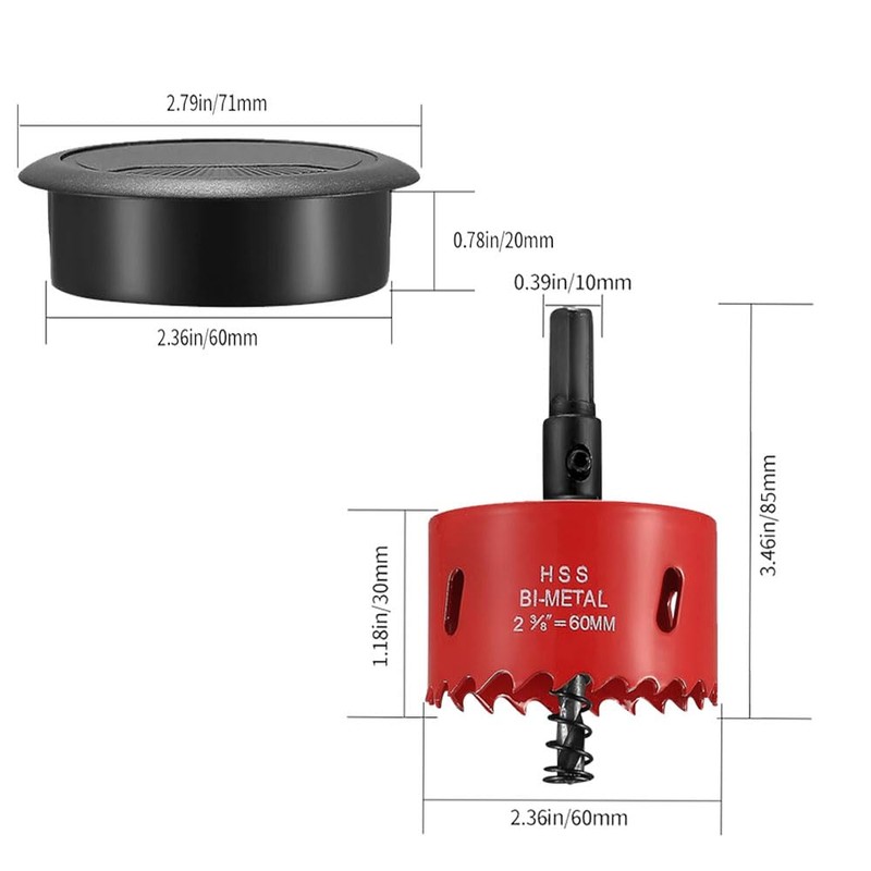 - [Package&Size] Total 12 pcs black desk cable hole covers with 1 pcs hole saw, mounting diameter is approximately 60 mm (2.36 in); hole saw diameter is approximately 60 mm (2.36 in). a good combination to meet your daily cable management needs.