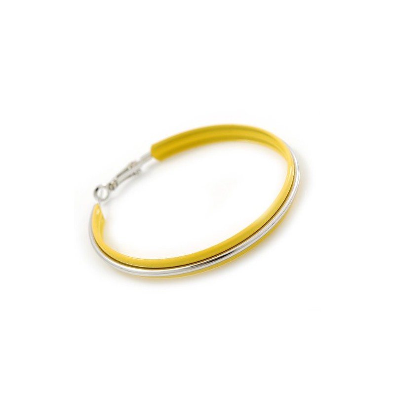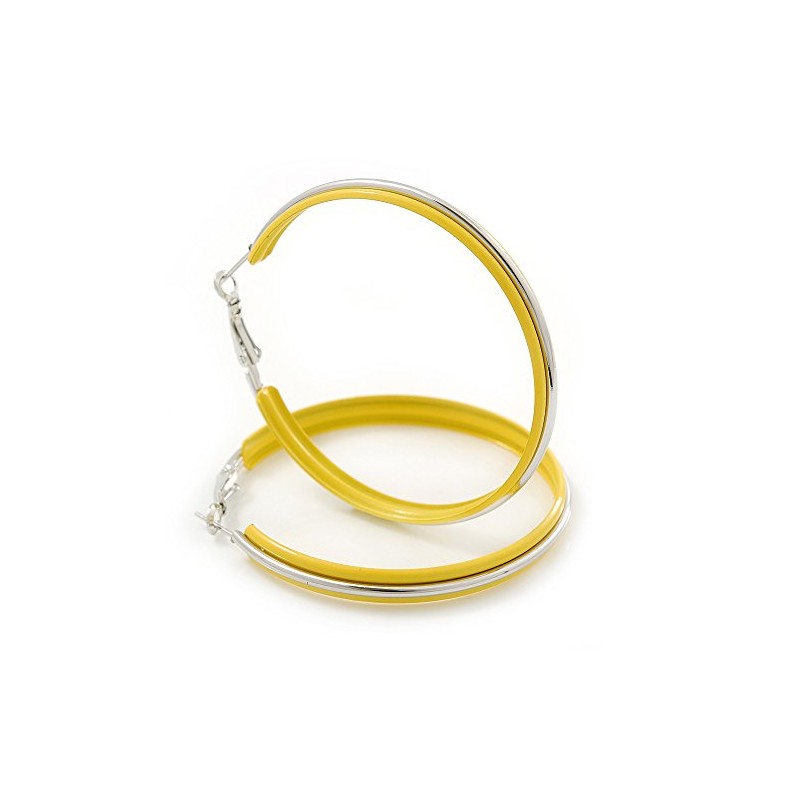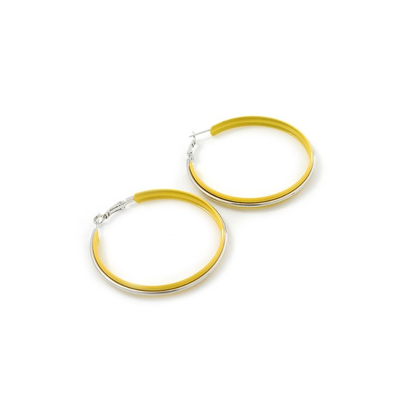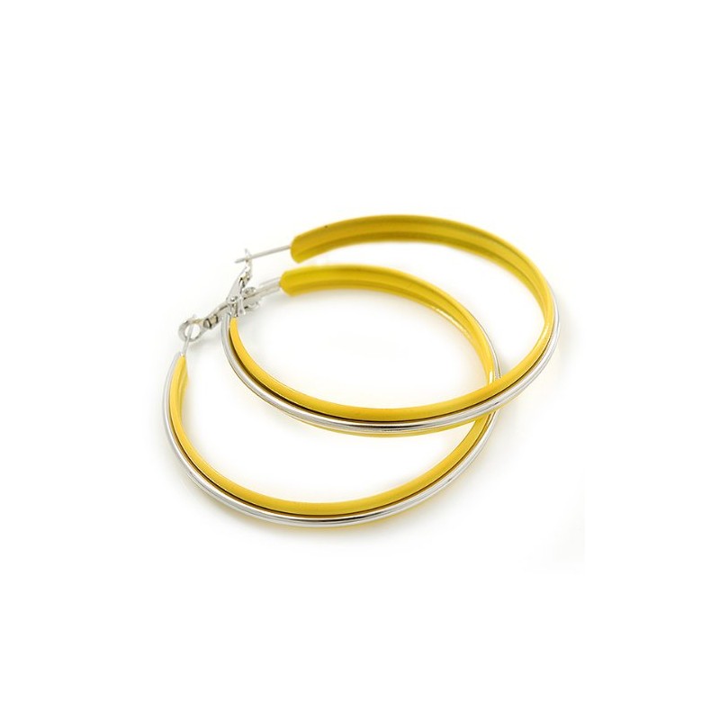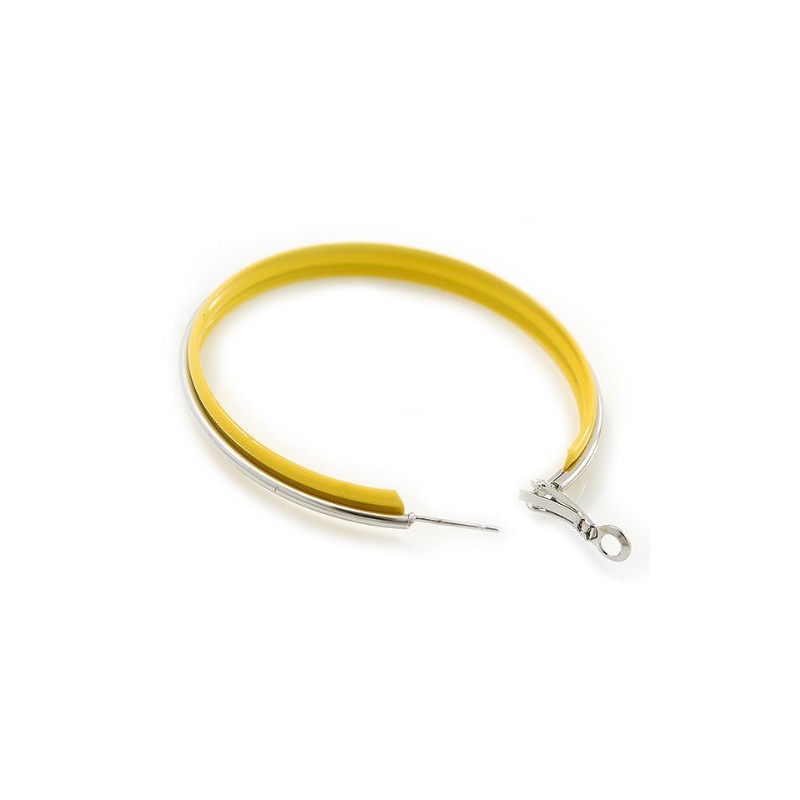 60mm D/Yellow Enamel Hoop Earrings/Silver Tone/Large