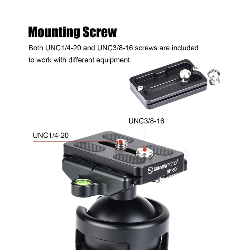 • Both 1/4-20 and 3/8-16 screws can be mounted on together, working not only with camera but also outdoor hunting tripod ballhead.
