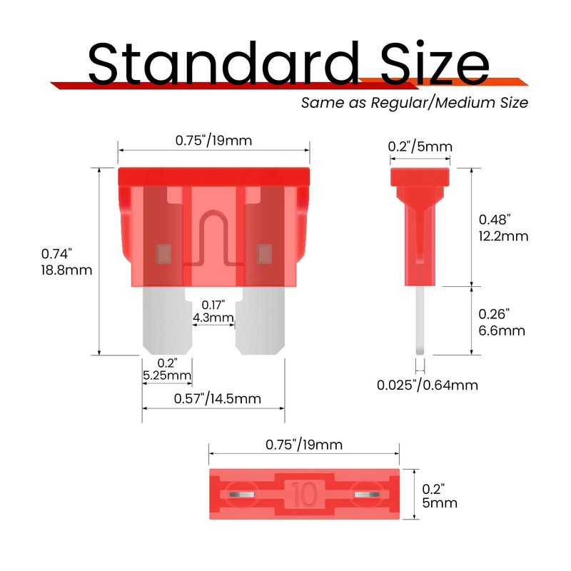 - Widely Compatible - These blade fuses are suitable for car, truck, motocycle, SUV, RV, boat and other electrical equipment. Commonly used for overcurrent protection of lights, radio, air conditioner, turn signal and more