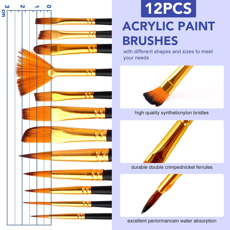 - 🎨【RICH PACKAGE】:The set has 12 PCS brushes,24 color tubes (12ml, 0.4 oz) acrylic paint,2 PCS palette,an easel,12 PCS/4 sizes blank drawing board,5 PCS/5 sizes paint knives,2 PCS brush cup,2 PCS art sponges and a gift box.