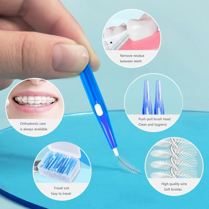 - Flexible Design-High elastic wire wrapped soft nylon wire bristles, 360° flexible floss picks to adapt to the curve and contours of the teeth, thorough cleaning. Push-pull sliding handles are healthy and hygienic,which makes them great for on the go or travel.