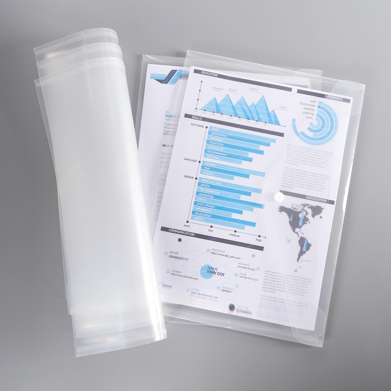 Our plastic file envelopes are practical assistants to help you tidy up your messy paper to make your desk in order, saving space and energy and bringing you visual beauty.