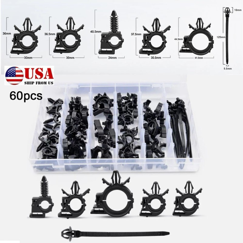 60pcs Universal Automotive Wire Loom Clips Kit Engine Bay Harness Routing Clip
