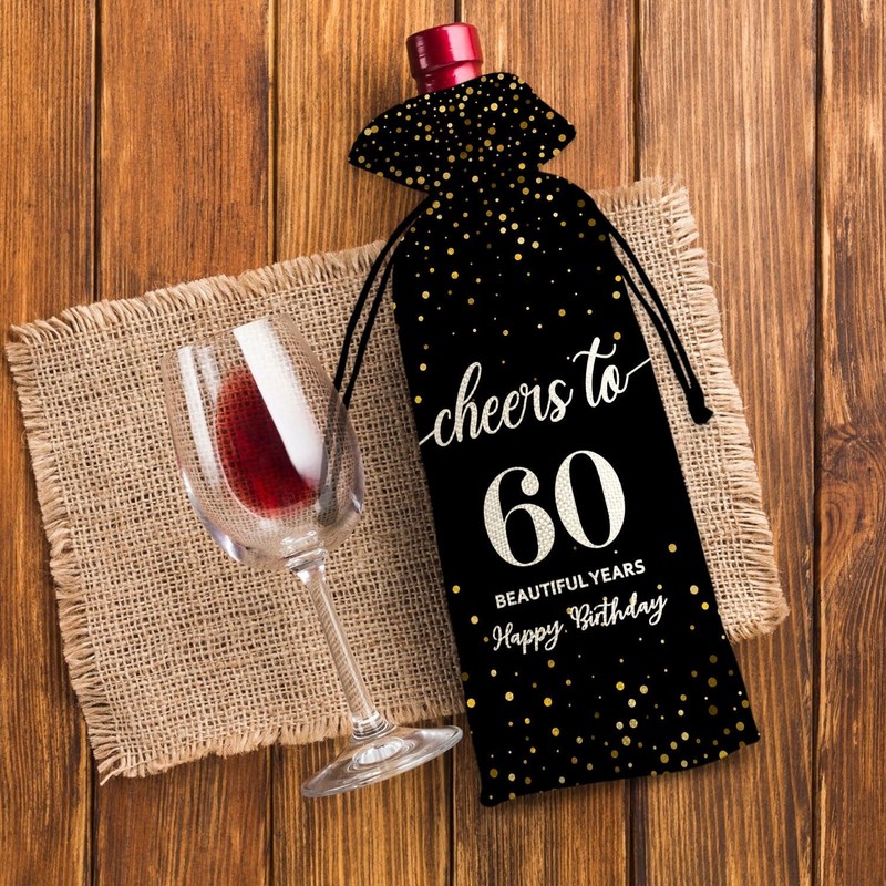 60th Birthday Wine Bag, 60th Birthday Gifts for Women Men, 60 Year Old Birthday Gift Party Supplies, Sixty Birthday Gift Idea Wine Bag for Her Girl Friend Sister (Black-60th, 13.5 x 5.5Inches)