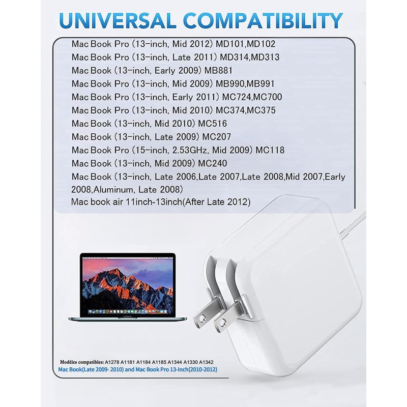 - Compatible with Mac Book laptops: Suitable for laptop power supply models: A1425, A1435, A1502, A1466, A1436, A1465. Compatible with Mac book Pro 13 inches: MGX72, MGX82, MGX92, MF839, MF840, MF841, MF843, MD212, MD213, MD662, ME864, ME865.ME866. Compatible with Mac Book Air 11 inches and 13.3 inches: MD223, MD224, MD3231, MD217, MD172, MD760, MD761, MJVM2, MJVP2, MJVE2, MJVG2, MQD32, 42, 52.