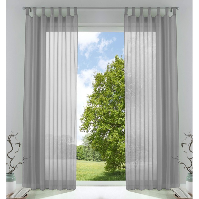 - The plain curtains are equipped with loops and sewn-in ruffle tape. The tightly woven voile fabric provides light sun protection.